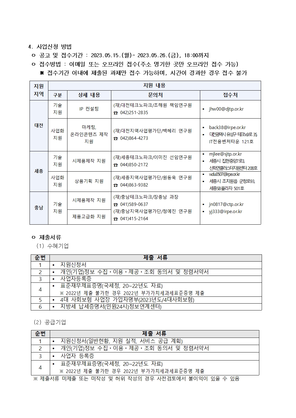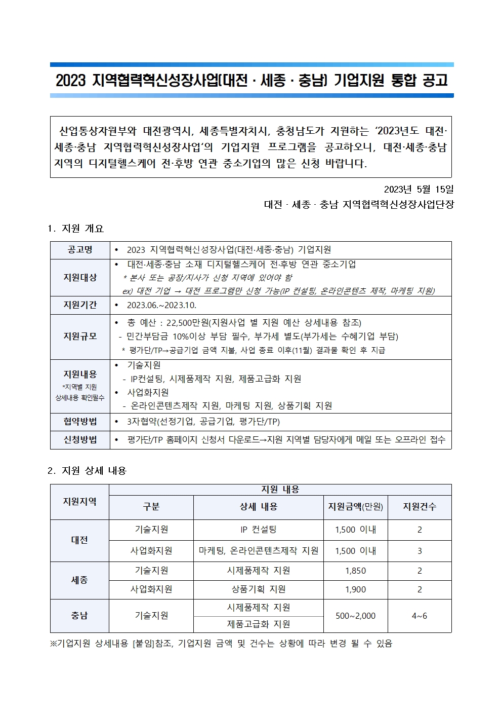 2023 지역협력혁신성장사업[대전·세종·충남] 기업지원 통합 공고