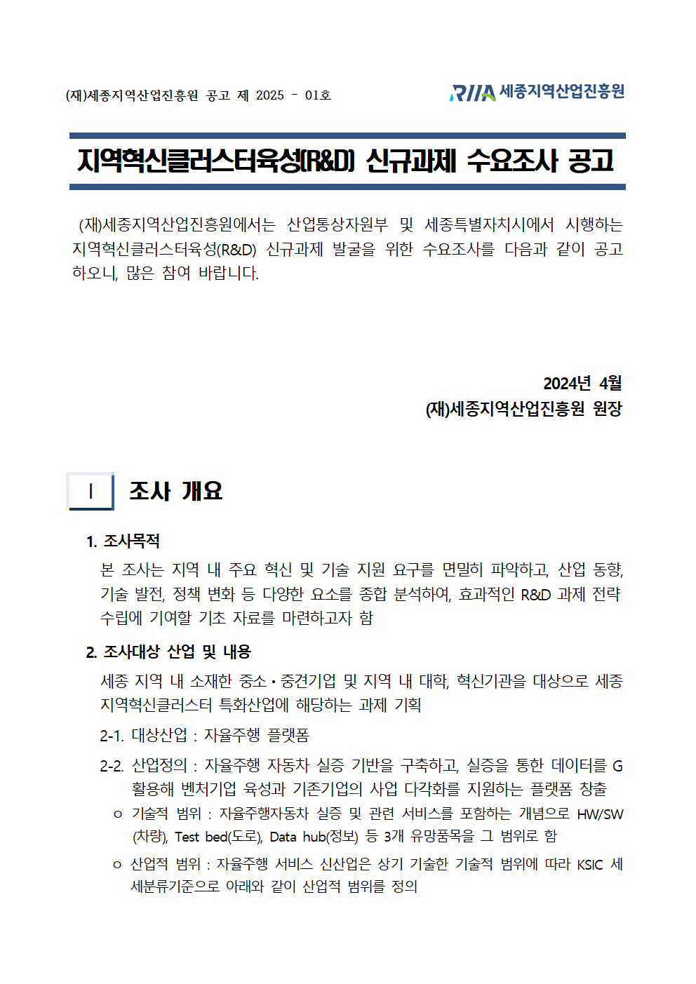 [공고2025-1호] 지역혁신클러스터(R&D) 신규과제 수요조사 (기간연장)