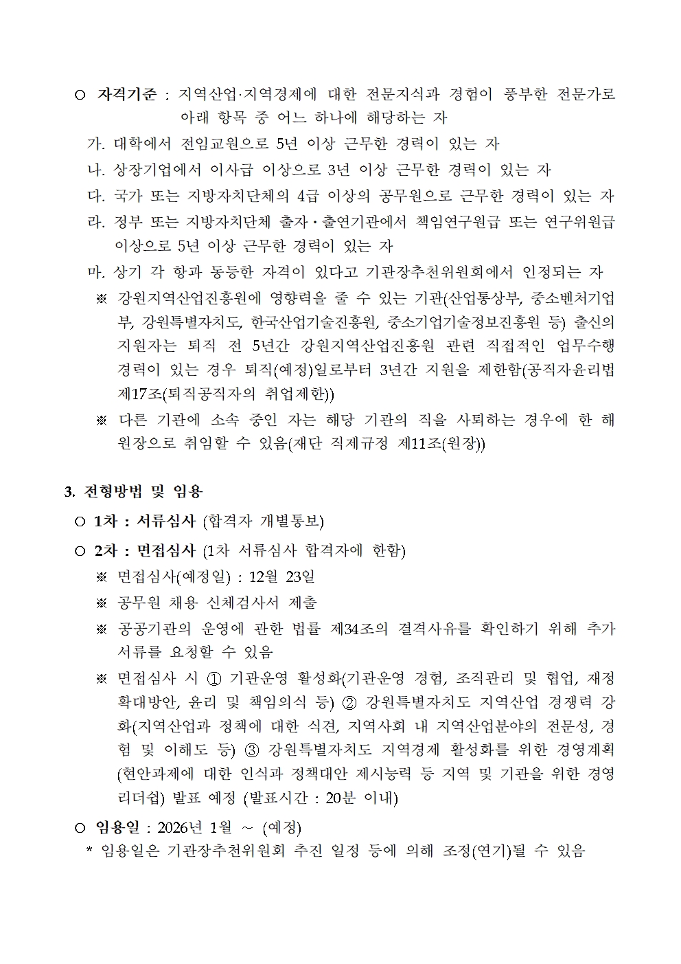 01. (강원_공고문) 강원지역산업진흥원 원장 채용 공고.hwp