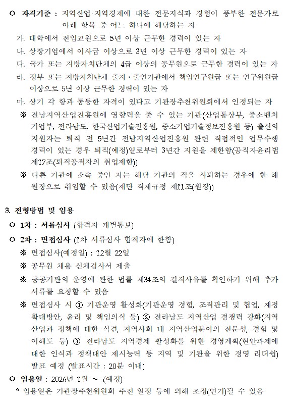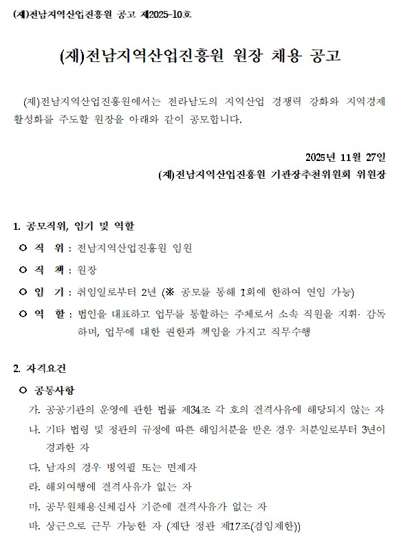 붙임 1. (전남) 공고 제2025-10호 전남지역산업진흥원 원장 채용 공고.pdf